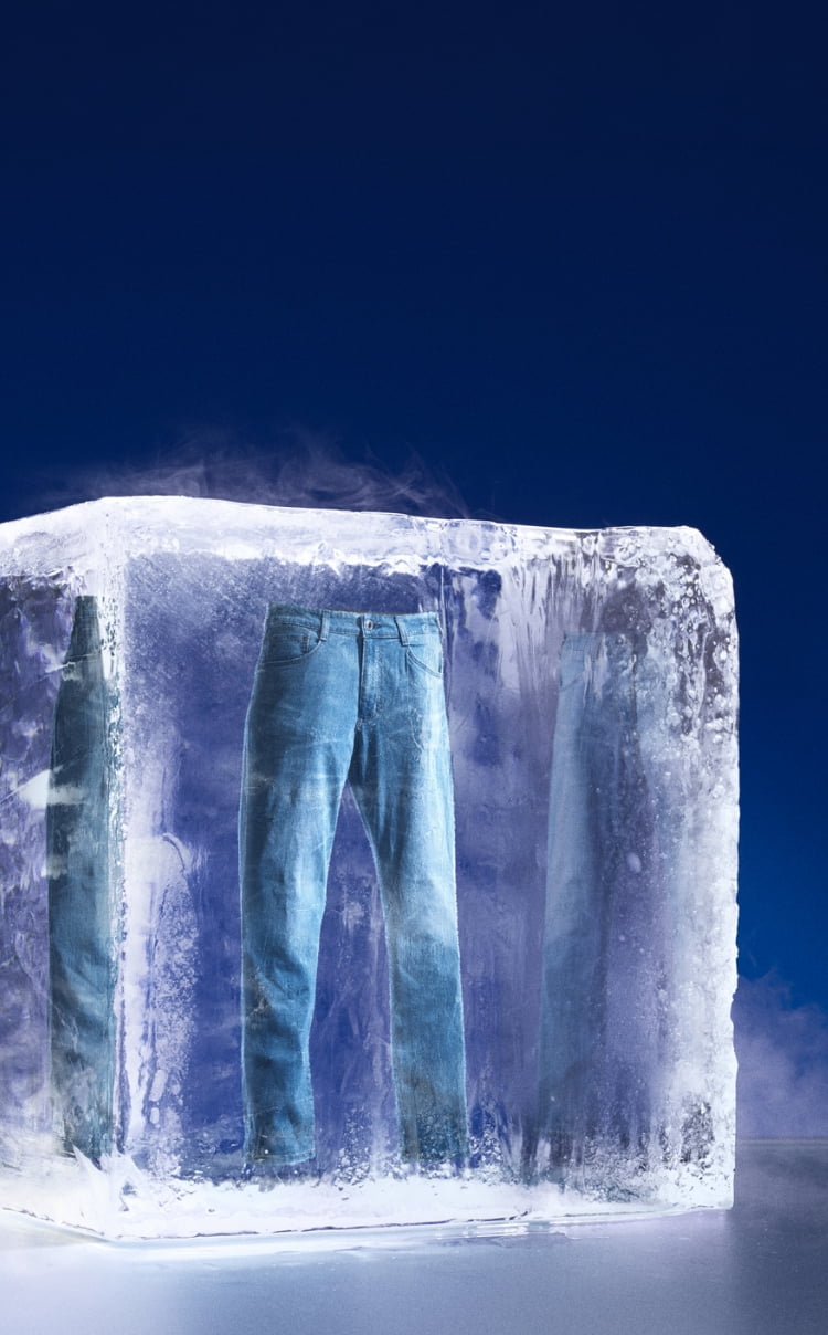 麻のドライなタッチと、再生繊維(セルロース)のしなやかさ、ナイロンの軽さを掛け合わせた、夏対応のモーションデニム。軽やかな穿き心地で熱気をため込みにくく、高い伸縮性が日常の動きに追従。仕上げのキシリトール加工が体の水分にひんやりと反応し、全てのアクションを涼しく機動的に切り替える。