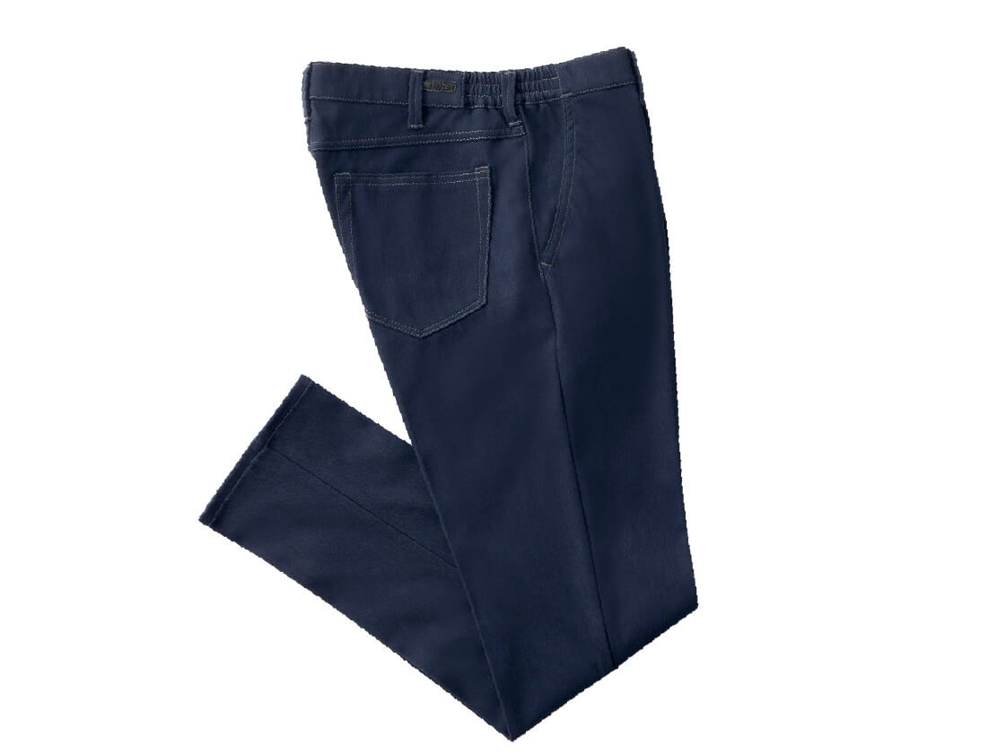 仕事でも使えるような、動きやすくてデニムに近いスラックスを探していたときに、デニスラに出会いました。丈夫でストレスフリーのストレッチで、毎日穿いても負担がかからなくて、これは最高ですね。