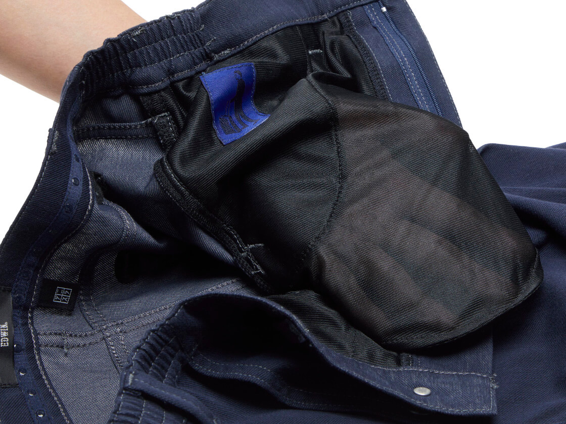 ポケット裏地にはメッシュスレーキを採用し、