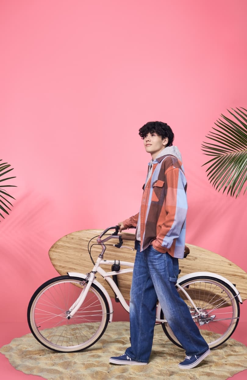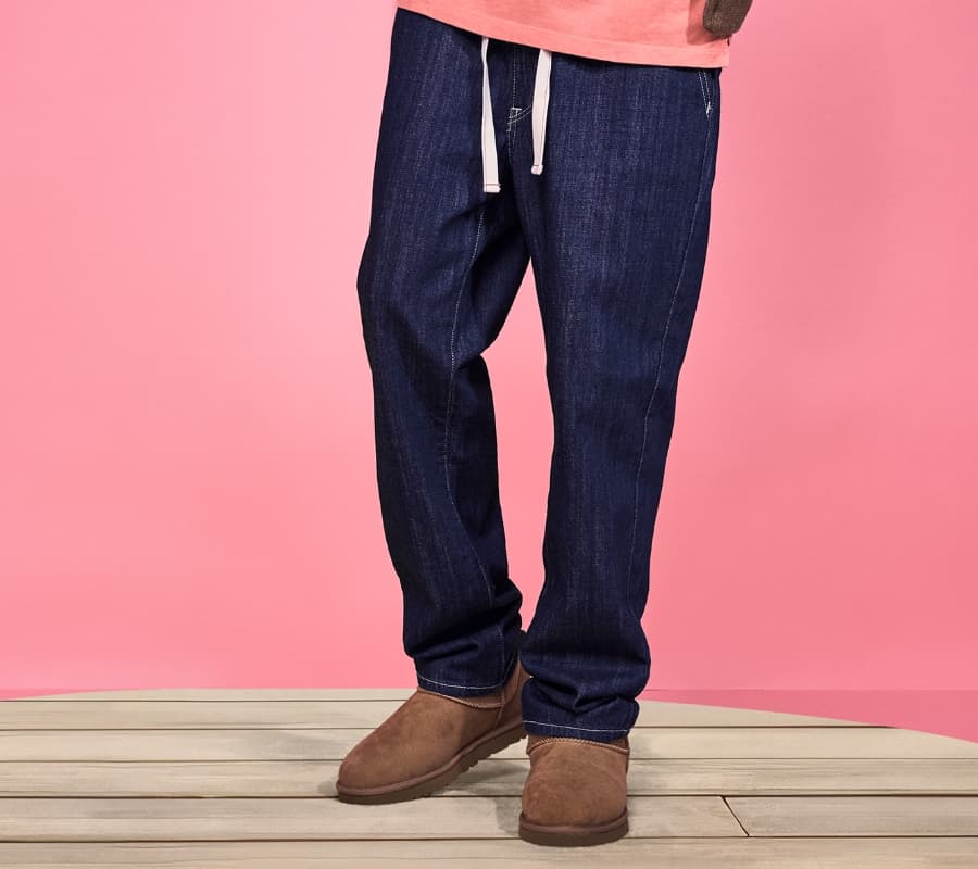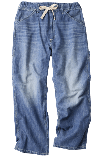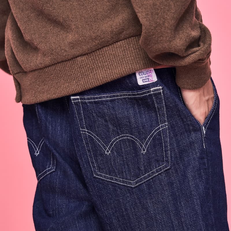吸湿性や速乾性などの機能に優れたバナナ繊維を使用した、EDWIN EASY WEARシリーズの基本モデル。王道のインディゴカラーと、ゆったりしたシルエットが心地よい。