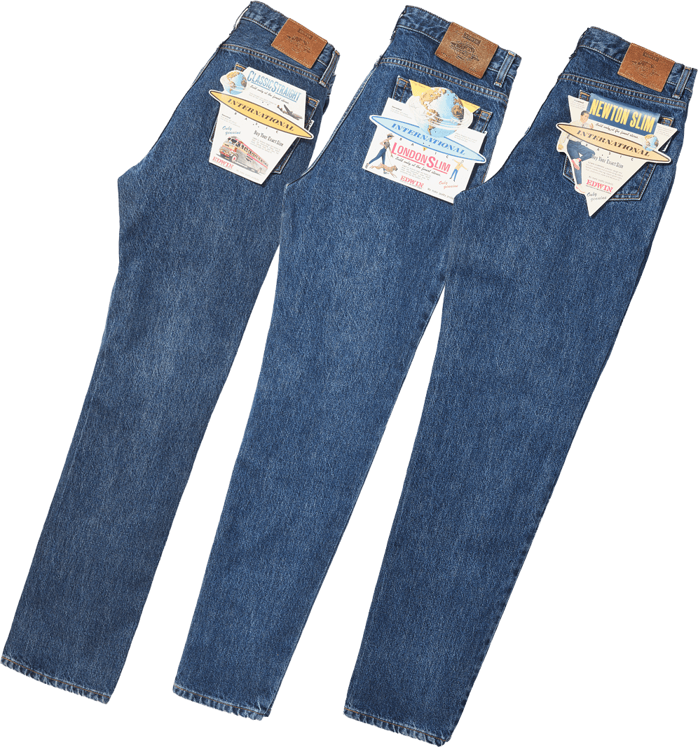 求められたのは、美しく身体に沿うタイトなジーンズ。ドイツで行われたジーンズ世界見本市で披露したロンドンスリムは、鮮烈なシルエットで世界のジーンズ関係者を驚かせた。その後次々とシルエットを世に放ち、EDWINのジーンズは世界的なベストセラーになった。2026年、数々の名品のなかから3種が限定復刻。ロンドンスリム、クラシックストレート、ニュートンスリム。原点の輝きが、いま再び息を吹き返す。