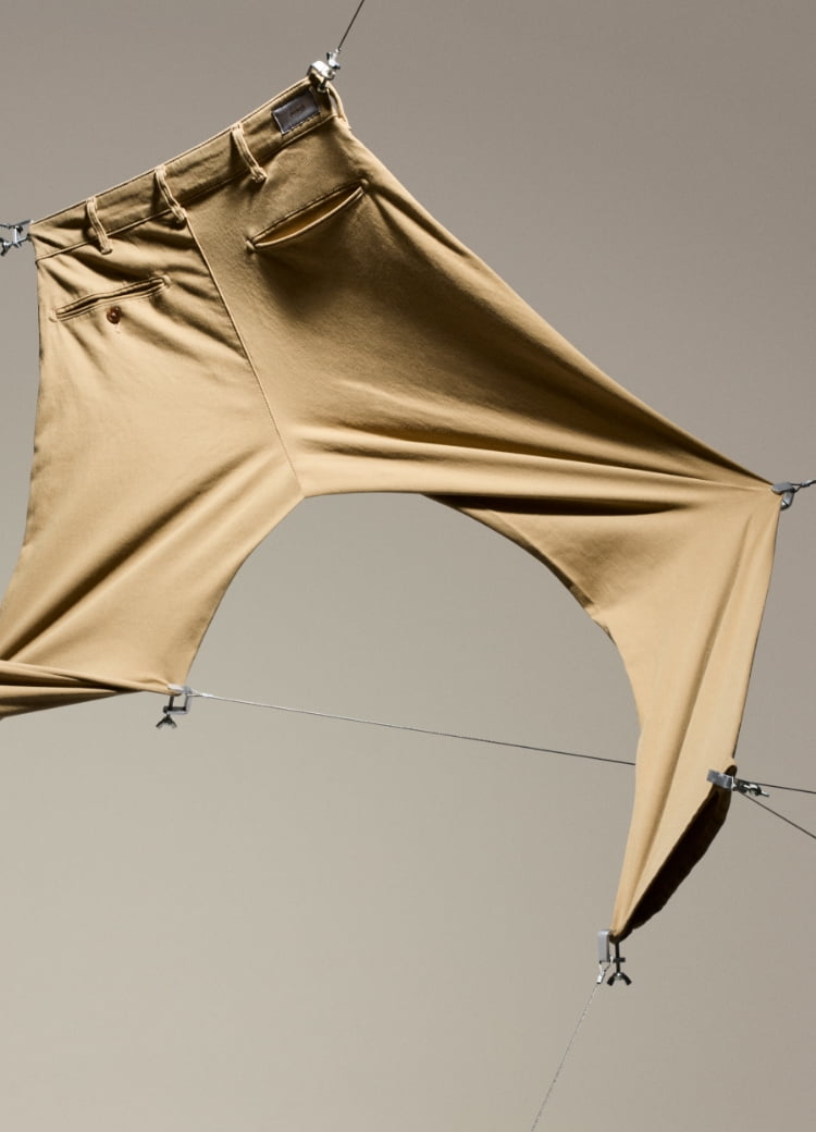 全方向に伸びるストレッチ性と、なめらかな肌あたりを掛け合わせた高機能デニム。動きに追従する快適さがありながら、クリーンで都会的なチノスタイル。